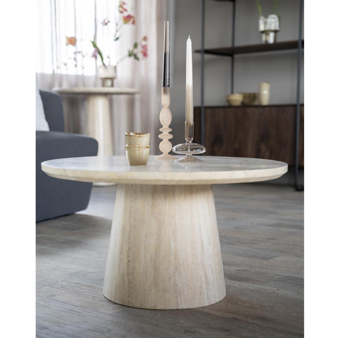 Aime, pyöreä sohvapöytä travertin