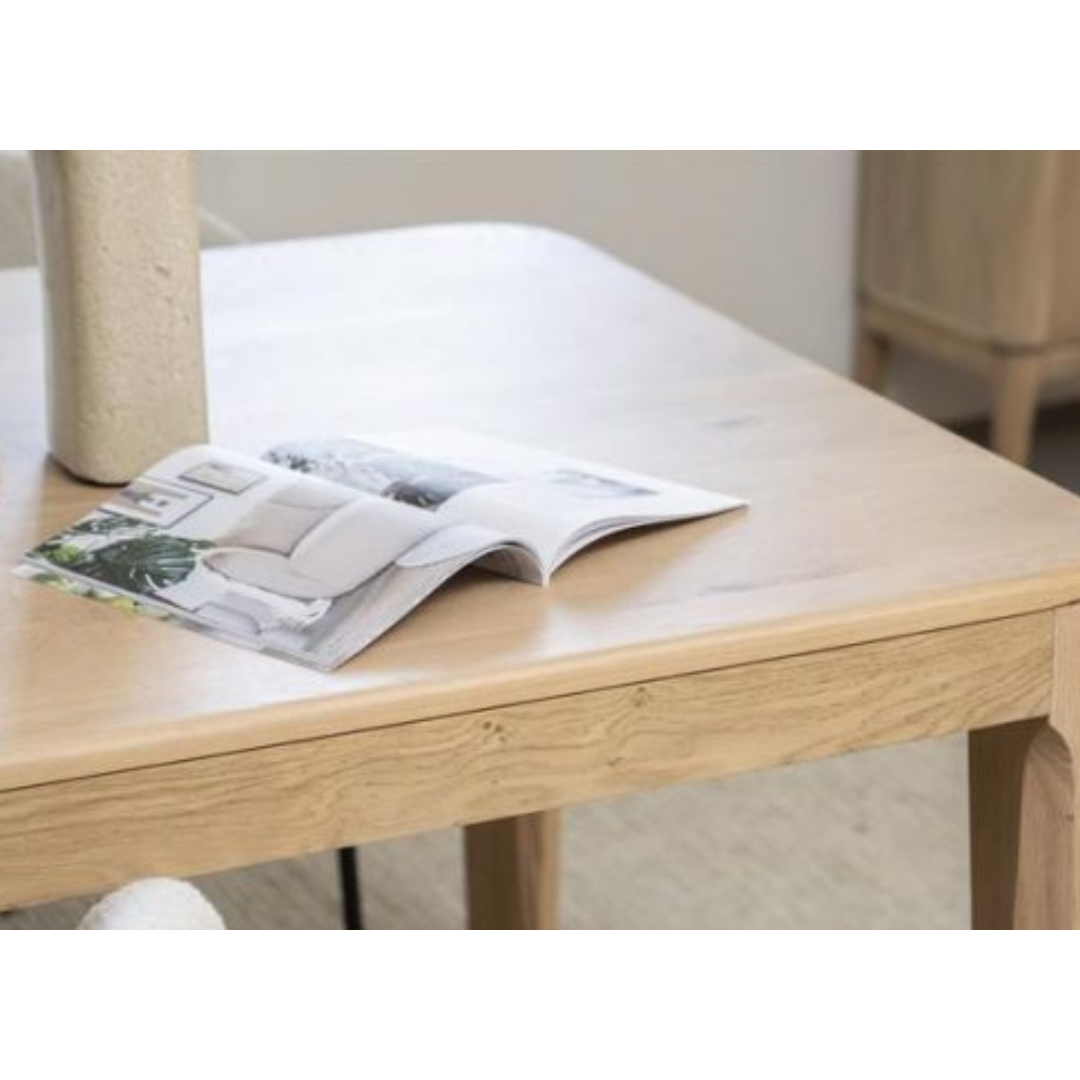 Katsetta ja elämää kestävään sisustustyyliin laadukas puinen ruokapöytä. Tammipuinen ruokapöytä 4-6 hengelle, ja tässä mallissa jalkojen muotoilu jättää hyvän tilan myös päätyihin. Erittäin käytännöllinen ja helppohoitoinen tammipöytä. Vaalea väri on elegantti sekä kaunis ja sopii ihanasti skandinaaviseen sisustukseen. Mallista on saatavilla myös suurempi koko ja pyöreitä malleja.