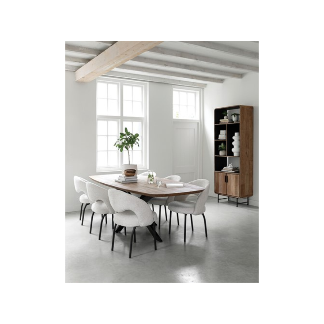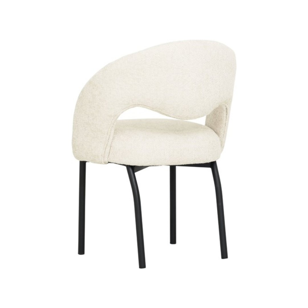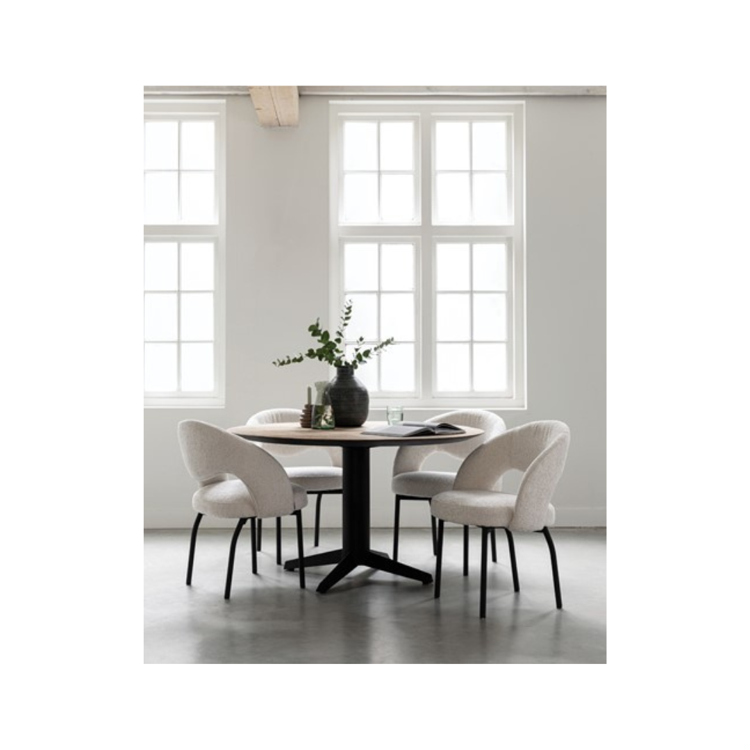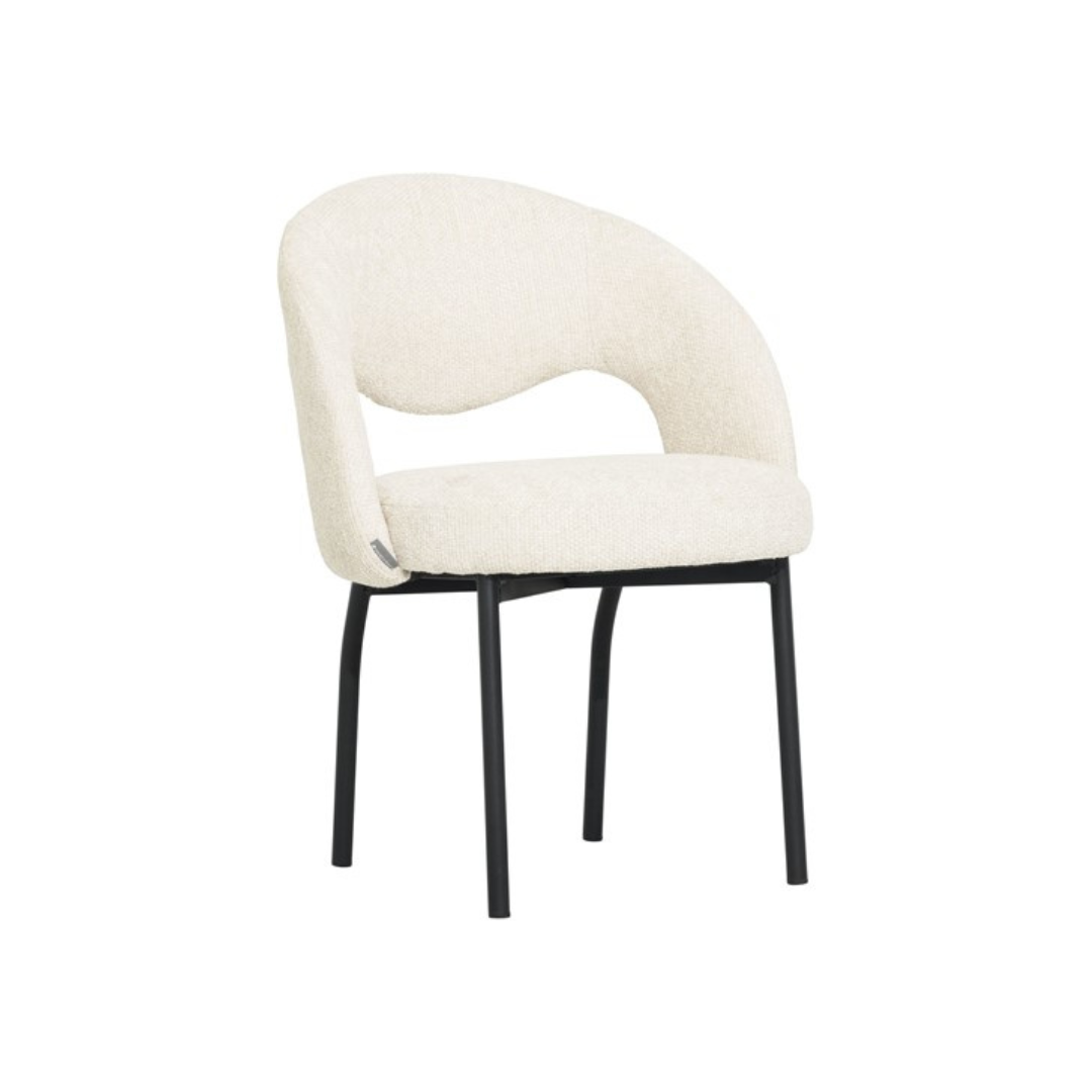 Must Living ruokapöydän tuoli ihastuttaa luonnonvalkoisella pehmeällä istuimella ja kuitenkin tukevalla muotoilullaan. Nojatuolimainen leveä tuoli kannustaa istumaan pidempääkin iltaa ja tuo sisustukseen lämpöä ja luonnollisuutta. Mustat metallijalat tarjoavat tyylikästä kontrastia ja varmistaa tuolin tukevuuden.
