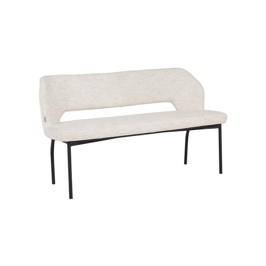 Pitkä ruokapöydän penkki kutsuu istumaan pidempääkin iltaa pöydän ääreen, ja on myös monikäyttöinen muissa tiloissa. Tukeva runko ja jalat sekä miellyttäväksi pehmustettu penkki kangaspäällysteisellä istuinosalla. Luonnonvalkoinen tuoli on elegantti värivalinta. Istuimessa on jämäkkä mutta pehmeä selkänoja, mikä tekee tuolista istuinmukavuudeltaan huippuhyvän.