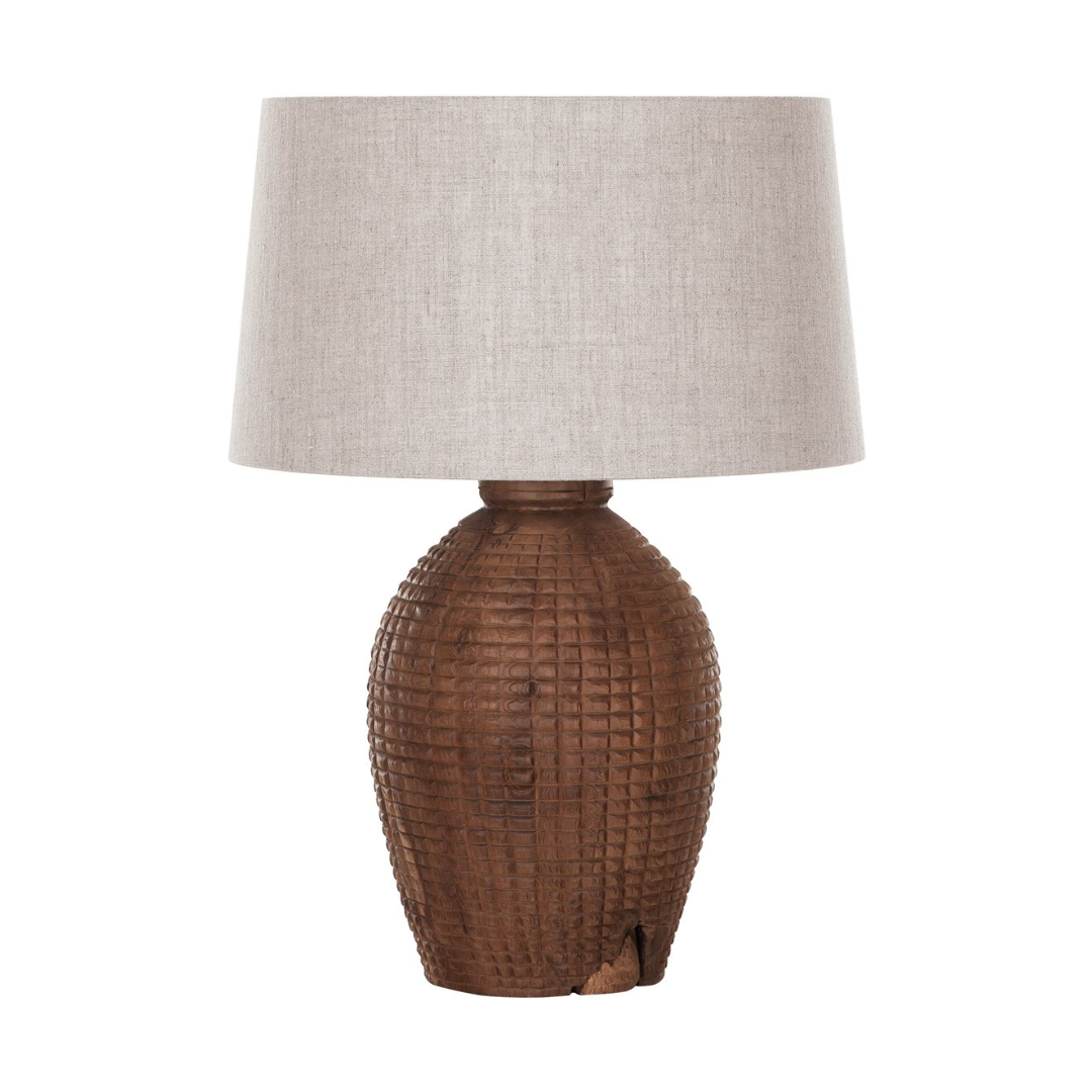 Tämä kestävästä tiikkijuuresta valmistettu iso pöytävalaisin on upea katseenvangitsija. Uniikki puinen jalka on käsinkaiverrettu puun yksilölllisyys huomiioden, ja eleettömän kaunis kulmikas pellavakupu tekee valaisimesta hienovaraisesti näyttävän. Jokainen valaisin on uniikki käsityön näyte ja varma kotisi katseenvangitsija. Pöytävalaisin on tyylikäs tunnelmavalona tai vaikkapa makuuhuoneen valaisin yölamppuna.