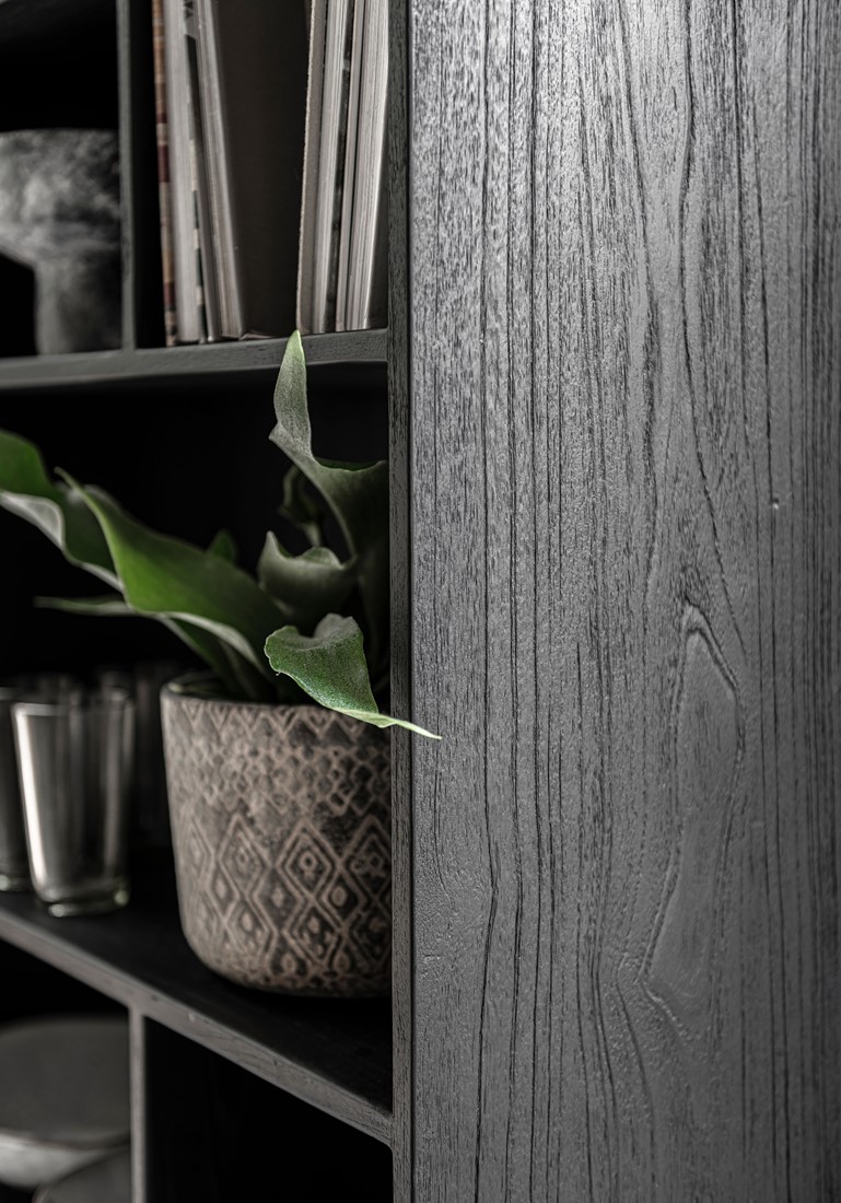 Jotain erilaista – tyylillä. Upean näyttävä musta puinen kirjahylly avohyllyillä ja kahdella kaapilla. Sivuille aukeavien tuplaovien takana on hyllytasot. Laadukas kokopuinen kirjahylly käy niin keittiön astiakaapiksi kuin olohuoneen sisustukseenkin tia lukunurkkaukseen. Hyllykkö kestää niin katsetta kuin käyttöäkin. Kierrätystiikki on myös ekologinen kalustemateriaali. Se on elänyt jo yhden elämän talona, veneenä tai vaikkapa laiturina. Tiikki on kova puu, kestää käyttöä ja sen ilmeikkyys vain paranee vanhetessaan. Taidokkaiden puuseppiemme käsittelyssä puusta syntyy upeita huonekaluja vaativaan makuun.