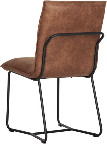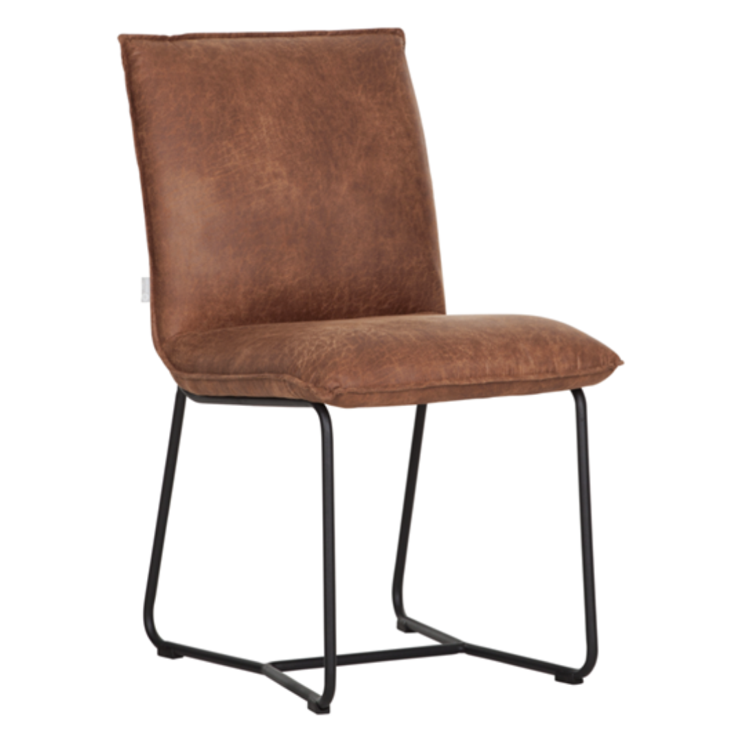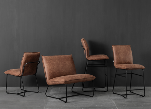 River Delaware konjakinvärinen ruokapöydän tuoli vetoaa pehmeällä kulutetulla Carliitto vintage nahkapinnalla. Konjakinvärinen nahkaverhoilu on tyylikäs ja suunniteltu yhdistymään täydellisesti varsinkin tiikkihuonekalujen värimaailmaan. Tuolin rungon muotoilu on mielenkiintoinen. Musta metallinen musta runko taipuu selkänojan takana kahvaksi, joka on sekä tyylikäs yksityiskohta että helpottaa tuolin siirtelyä ja mahdollistaa myös kahvan käyttämisen lautasliinan tai muiden koristeiden ripustamiseen.
