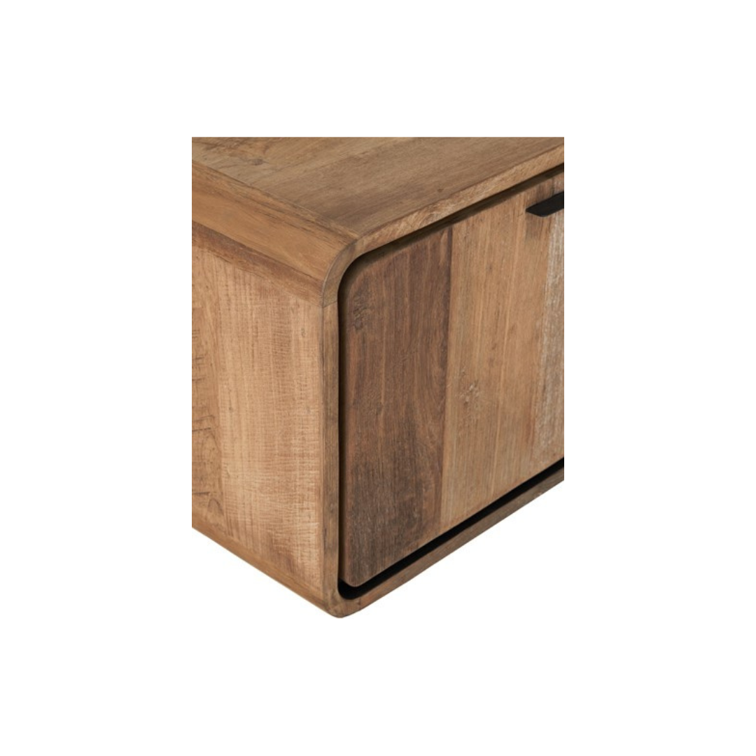 Ripustettava tv-taso on tyylikäs ja käytännöllinen ratkaisu moderniin kotiin. Se on valmistettu laadukkaasta kierrätystiikistä, joka tuo huonekaluun lämpöä ja ainutlaatuista luonnetta. Tason yksinkertainen muotoilu jättää lattian vapaaksi, luoden tilaan avaruutta ja siisteyttä.