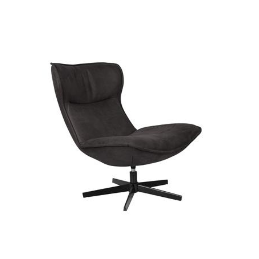 Upea musta Johnny nojatuoli on nojatuolimalli, jossa on hyvä istua ja myös lepuutta niskaa. Miellyttävä pyörivä nojatuoli on käytännöllinen valinta tilaan, jossa mielellään halutaan seurustella tai katsella vaihtuviin suuntiin. Pehmeä harjattu nahkajäljitelmäpinta on laadukas ja miellyttävä istua. Sarjaan löytyy myös rahi. Nojatuoli ja rahi on yhdistelmänä takuuvarma viihtyvyyden takaaja. Saatavilla myös konjakin sävyssä.