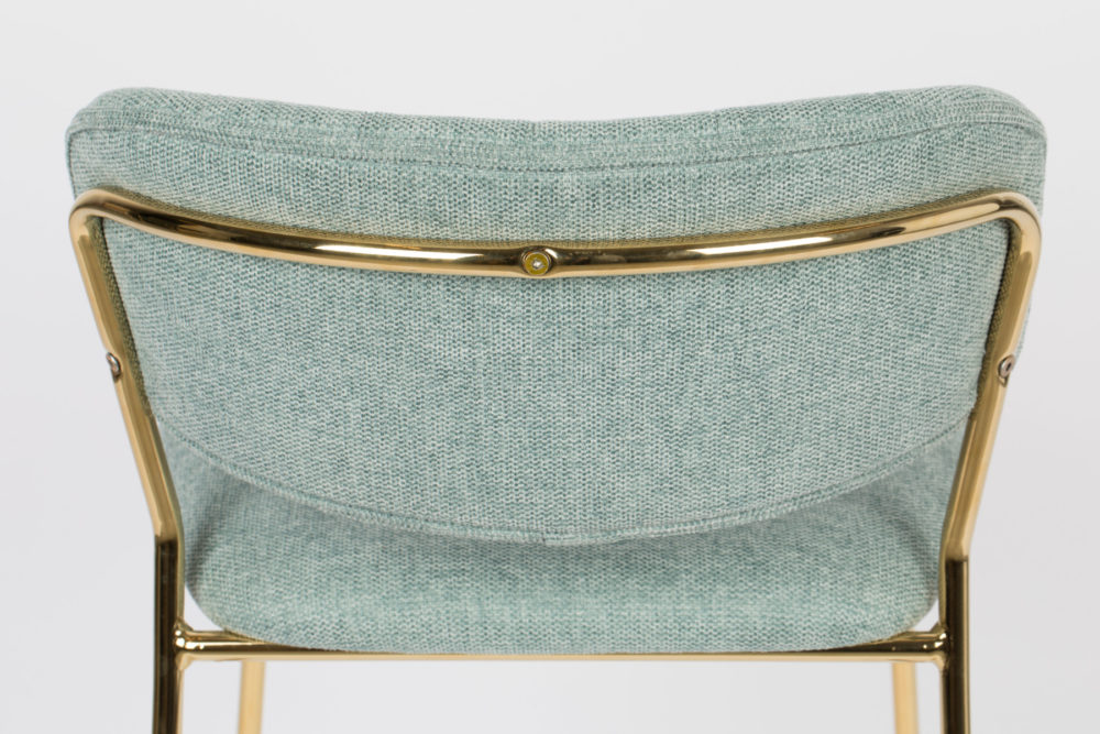 Ihanan pehmeä Jolien baarituoli saarekkeeseen sopivassa koossa. Vaaleanvihreä samettinen baarituoli supermukavalla pehmustetulla istuinosalla ja kunnon selkänojalla on todella miellyttävä istua. Kultaiset jalat viimeistelevät ylellisen kokemuksen.