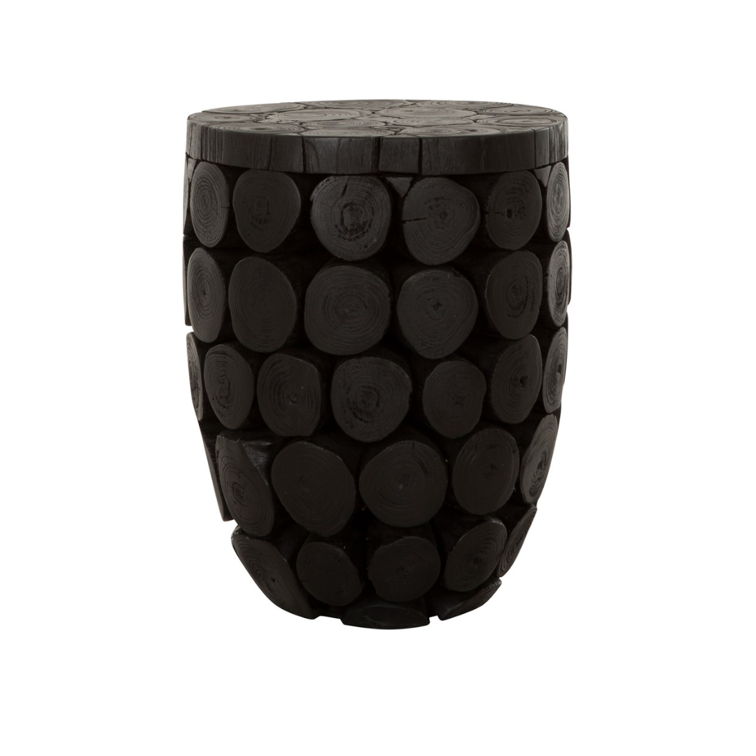 Tämä pyöreä musta sohvapöytä on upea sisustuselementti moneen käyttöön. Mustaksi käsitelty pikkupöytä toimii kätevänä sohvapöytänä, sivupöytänä tai vaikka kukkapöytänä tai jakkarana. Tiikkipuun juurikiekoista tehty, hienosti kävyn muotoa seuraava pikkupöytä tuo luonnollista kotoisuutta moderniinkin kotiin tai mökille. Rouhea vintagepuu on hiilikäsitelty niin että puu on kokonaan musta.