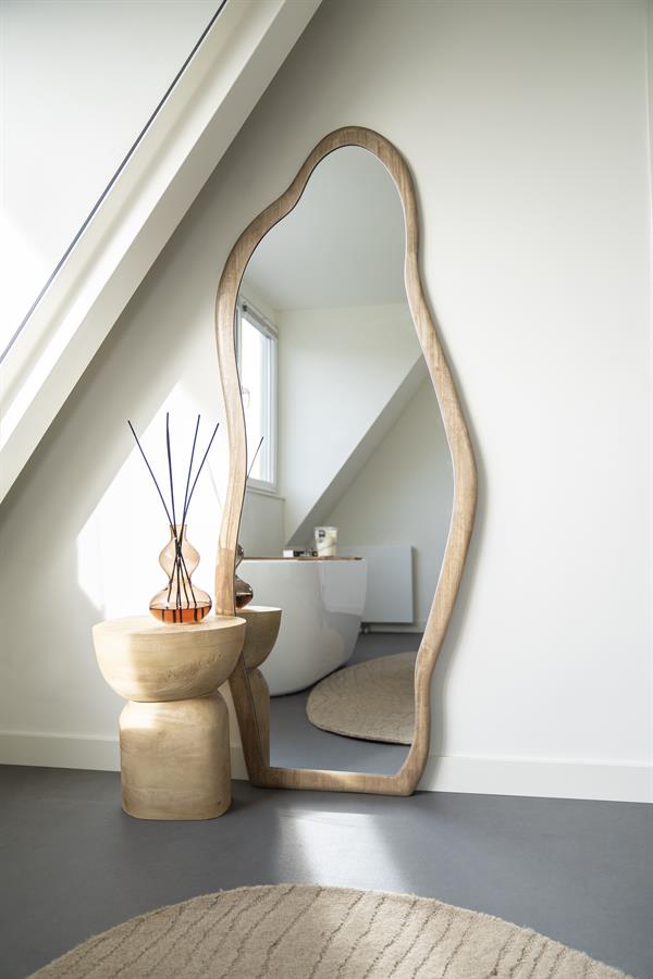 Iso lattiapeili Laban on muotoilultaan hauska – hieman haamua muistuttava epäsymmetrinen peili. Kokonsa puolesta täydellinen kokovartalopeilli eteiseen, makuuhuoneeseen tai vaikka vaatehuoneeseen. Takana on kiinnityskolot ruuveille, joten voit nostaa peilin myös seinäpeiliksi. Ripustat se helposti seinälle haluamaasi paikkaan, mutta vankka ja tyylikäs peili voi myös vain nojata lattiaa. Lattiapeili on näppärä valinta myös silloin kun seiniin ei voi porailla.