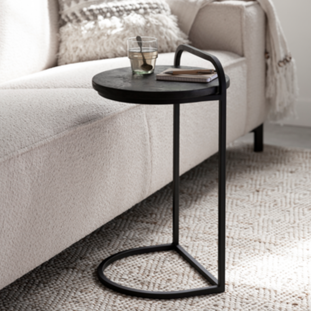 Pieni musta läppäripöytä on kätevä etätyöpöytä, jonka voit pitää nojatuolin tai sohvan sivulla ja laskea työvälineet tai teekupin tarvittaessa. Tyylikäs läppäripöytä sopii olohuoneeseen kuin työnurkkaukseenkin ja toimii myös siirreltävänä pöytänä vaikka leffaillan tarjoiluille.
