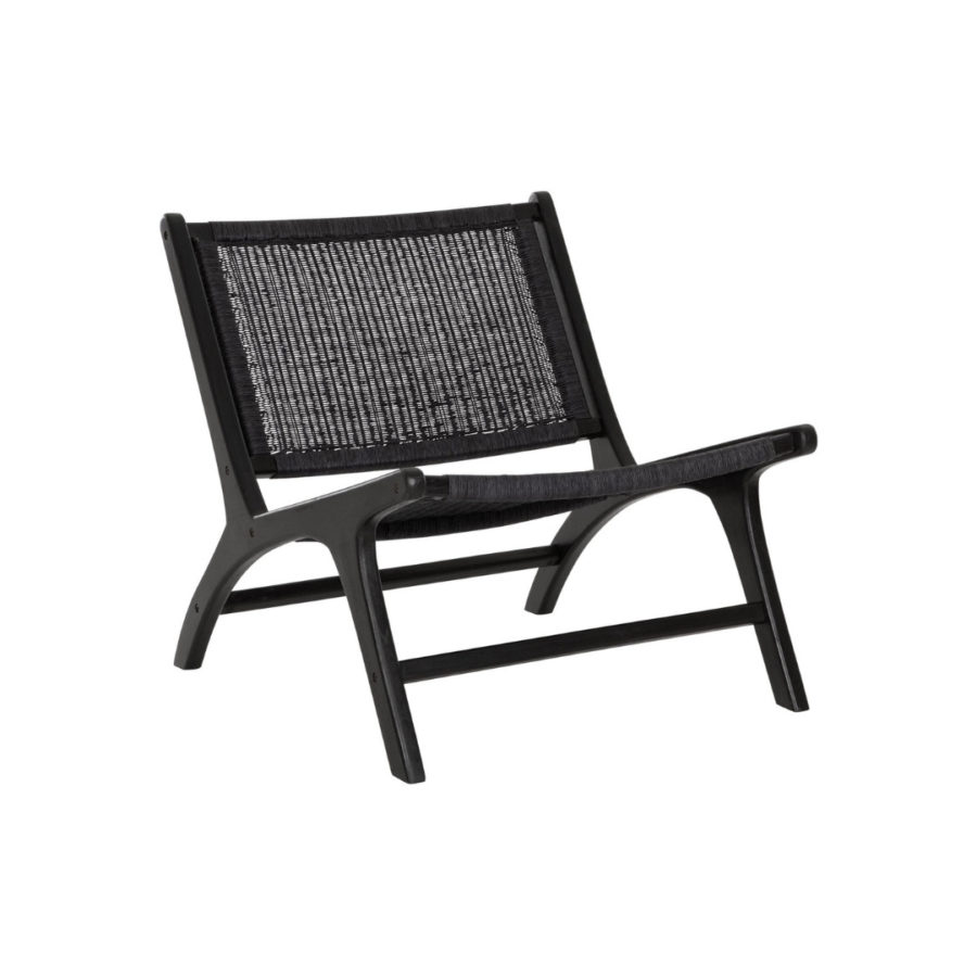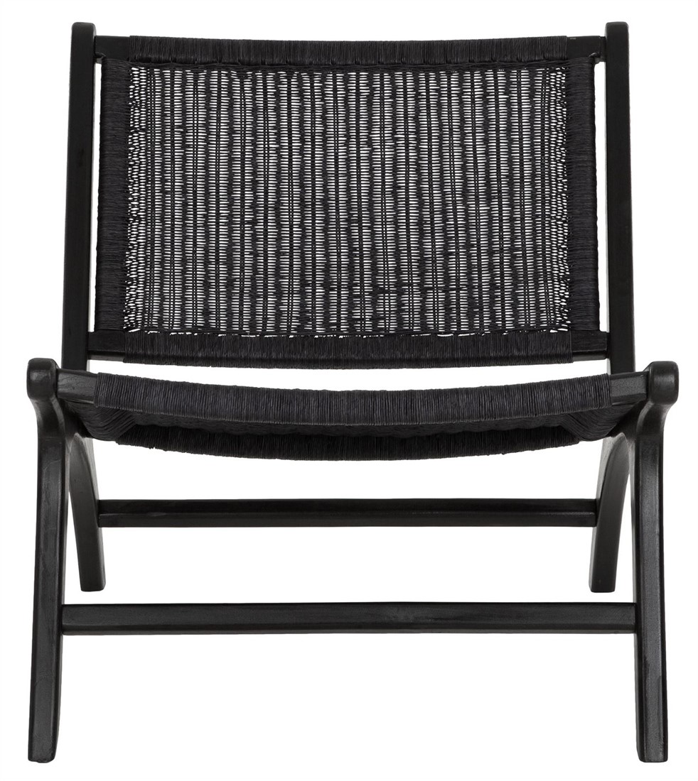 Lazy Loom punottu nojatuoli on miellyttävä ja kaunis kotoisan kodin lepotuoli. Musta väri on punostuolissa yllättävä ja särmä. Tuolin runko on vahvaa tiikkipuutta. Ekologinen kierrätystiikki on sekä eettisesti kestävä että käyttöä kestävä puulaji. Istuinosa on metalliverkon ympärille punottua paperinarua, mikä tuntuu samalla vahvalta että istuintuntumalta pehmeältä. Tässä matalassa nojatuolissa on hyvä istua eikä se tuki maisemaa myöskään ikkunan edessä.