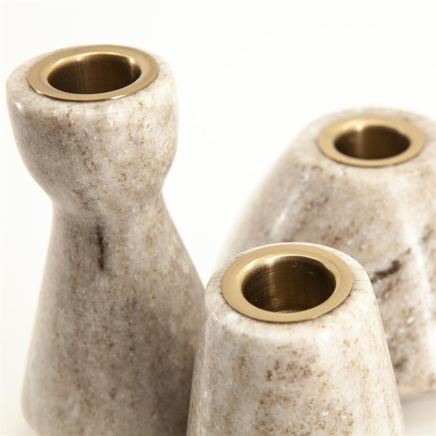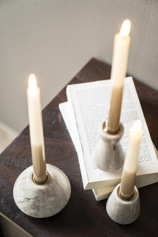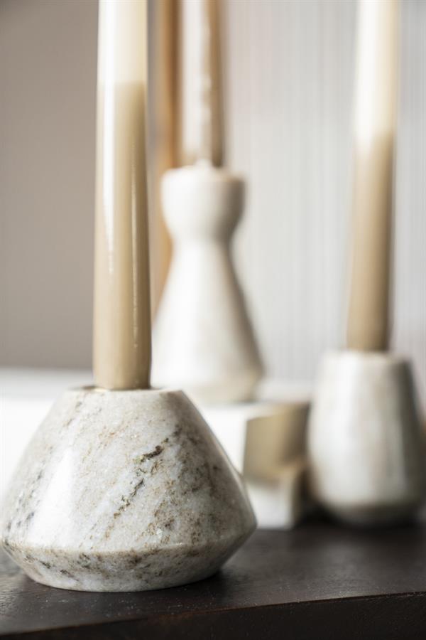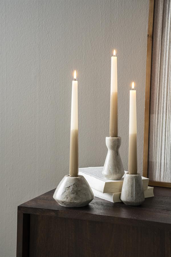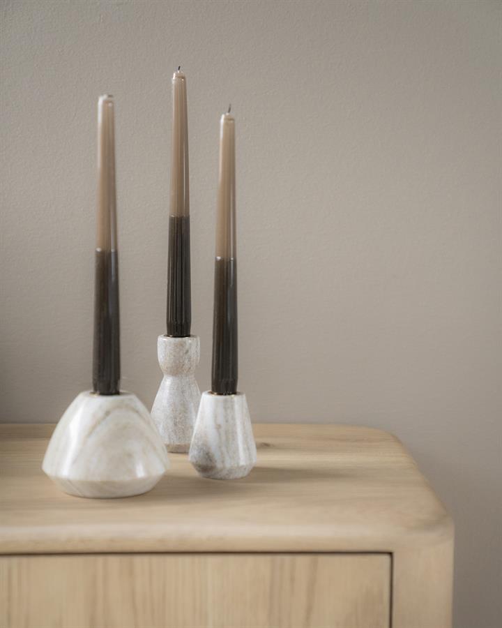 Pehmeälinjaiset marmoriset kynttilänjalat kodin sisustukseen. Kolme kaunista eri kokoista marmorista kynttilänjalkaa kruunukynttilälle.