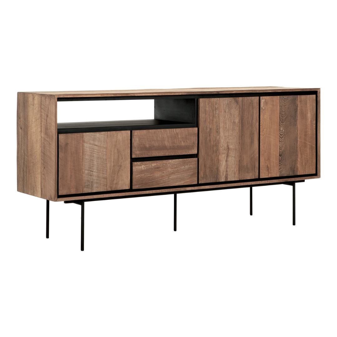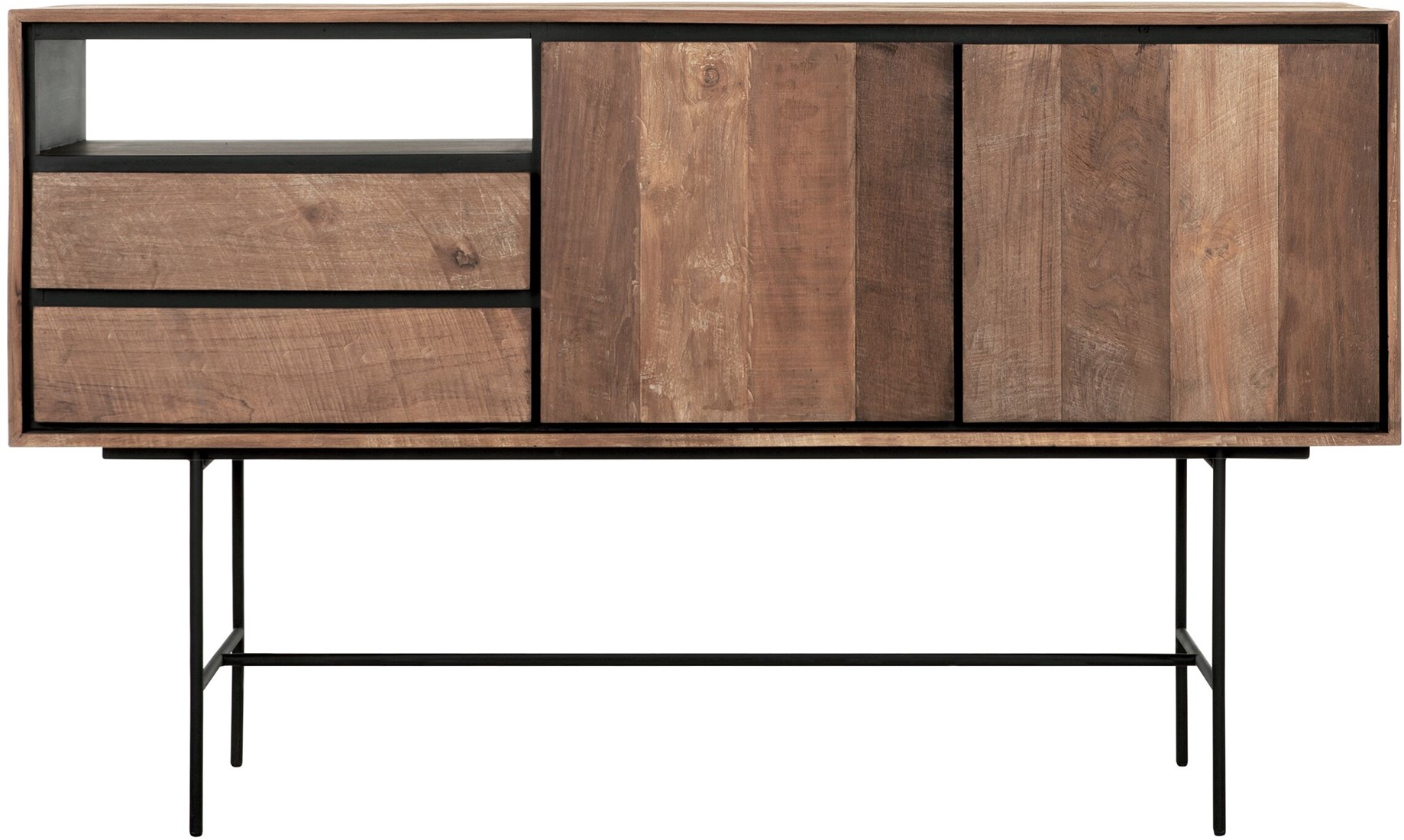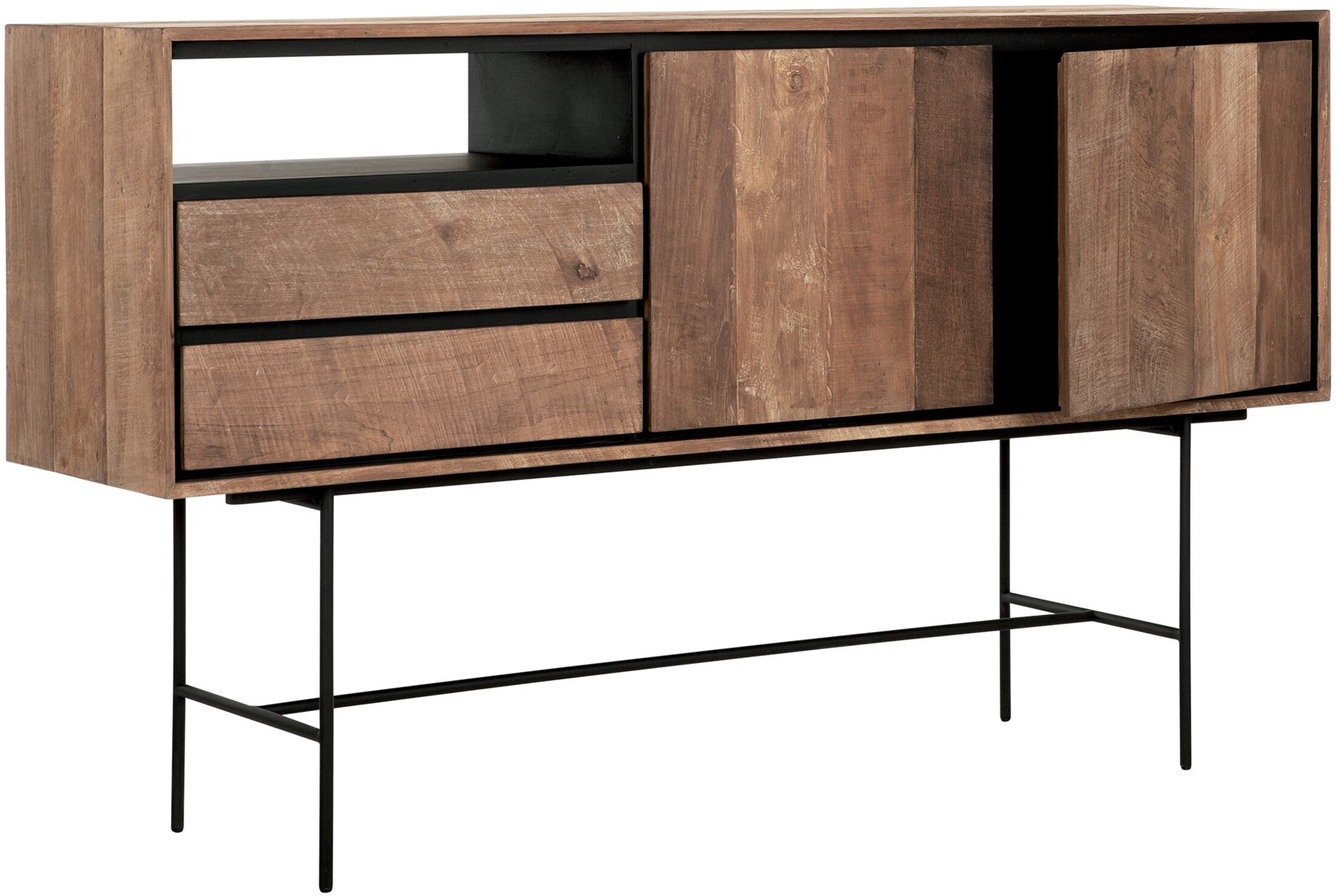 Tyylikäs puinen senkki, joka on valmistettu kierrätystiikistä ja seisoo vankoilla metallijaloilla. Kaksi kaappia ja vetolaatikot mahdollistavat helpon tavaroiden ja astioiden säilytyksen. Senkki sopii niin olohuoneeseen, makuuhuoneeseen tai eteiseen katseenvangitsijaksi. Laadukas viimeistelty keräystiikkitiikki tekee tästä kalusteesta ainutlaatuisen ja upean.