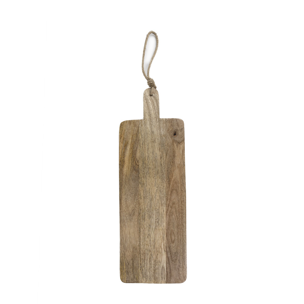 Iso leikkuulauta, joka käy täydellisesti myös herkkujen tarjoiluun. Tämä puinen pitkä leikkuulauta sopii niin tarjoiluun, ruuan käsittelyyn kuin keittiön kaunistukseksi. Kätevä kädensija helpottaa tarjoilua ja jalka nostaa tarjottavat kivasti hieman paremmin esiin ja käden ulottuville. Juuttinyöristä leikkuulaudan voi halustessaan ripustaa roikkumaan. Täydellinen vaikka juutojen ja pikku tapasten tarjoiluun.
