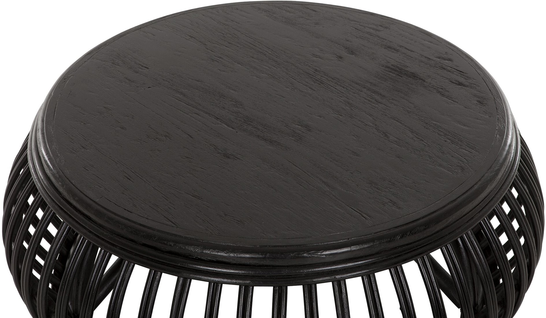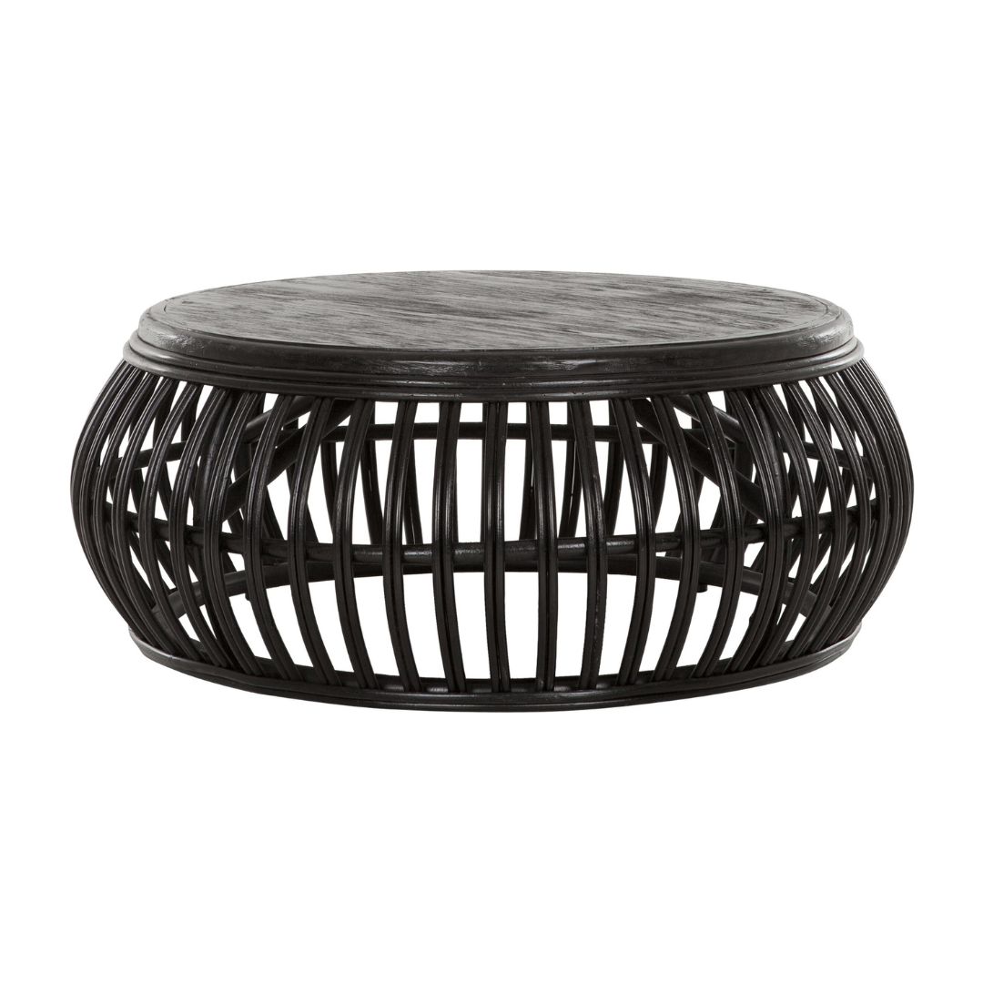 Pyöreä musta rottinkipöytä on täydellinen valinta rennon tyylikkääseen sisustusmakuun. Rottinkinen pöytä mustana on upea katseenvangitsija ja kokopuinen vankka pöytälevy tekee siitä myös kestävän ja käytännöllisen. Mielenkiintoinen musta rottinki yhdistettynä sohvapöydän kaarevaan muotoon tekee pöydästä uniikin yksityiskohdan kotiisi.