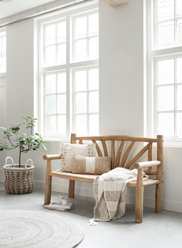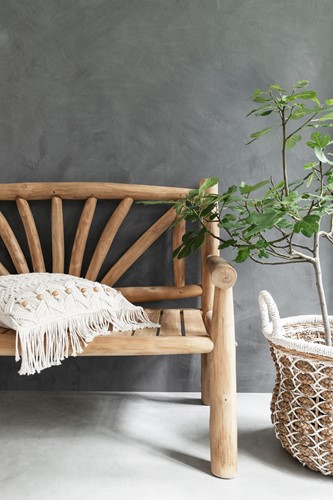Tämä upea puupenkki on luotu kunnioittamaan luontoa sekä käyttäjäänsä. Tiikkipuinen penkki valmistetaan teak puun oksista, joista ei voida sahata leveää lankkua, mutta jotka ovat erittäin kestävää materiaalia huonekaluihin. Jokainen puupenkki ja jakkara on näin ollen uniikki ja käsin valmistettu.