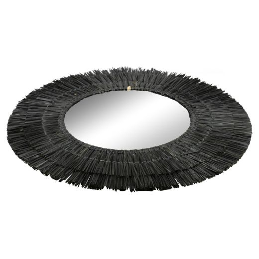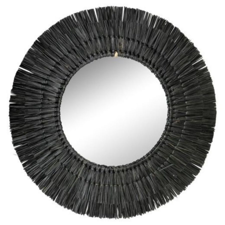 Pyöreä peili meriheinäkehyksellä, musta