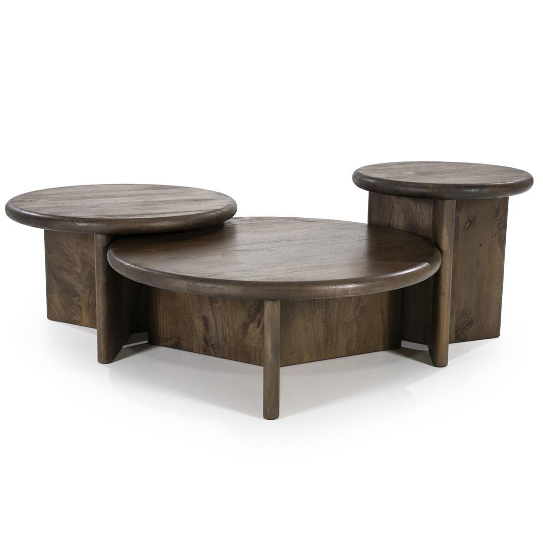 Ruskea pyöreä puinen sohvapöytä, large