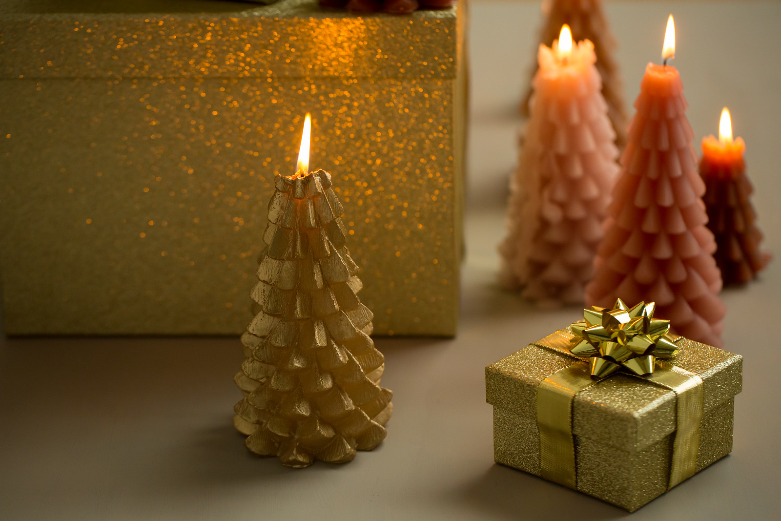 Kuusen mallinen käsinvalettu kultainen kynttilä, joista voit luoda vaikka kokonaise taikametsän eri värejä ja kokoja yhdistämällä. Large koko, jonka paloaika  42h. Palaa kauniisti loppuun asti. Kynttilässä ei tuoksua.