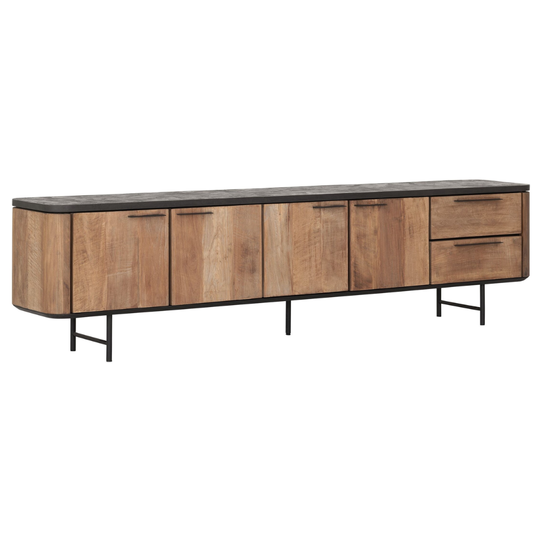 Tyylikäs tv-taso, joka on valmistettu ylellisestä kierrätystiikistä sekä mortex kiviaineesta. Neljä kaapinovea sekä kaksi vetolaatikkoa mahdollistavat tavaroiden säilyttämisen piilossa katseilta. Tv-tasoa voi käyttää myös lipastona jolloin se sopii niin olohuoneeseen, makuuhuoneeseen tai eteiseen katseenvangitsijaksi. Laadukas viimeistelty tiikki sekä kivimäinen mortex yhdessä tekevät tästä kalusteesta upean. Puun lämpö ja kiven näyttävyys samassa paketissa.