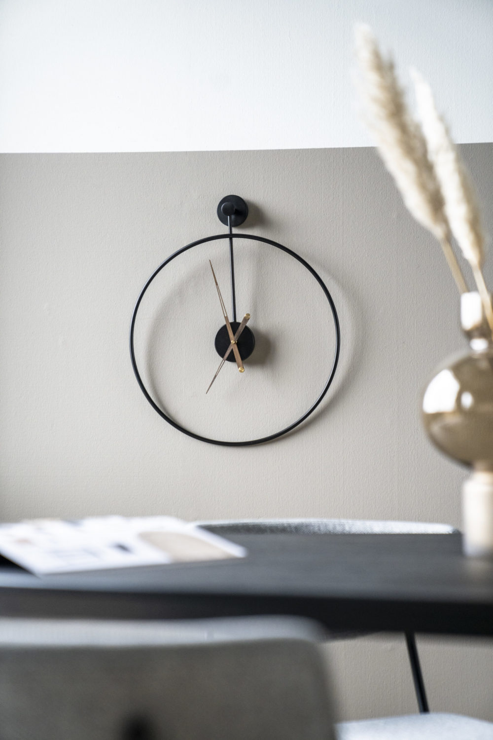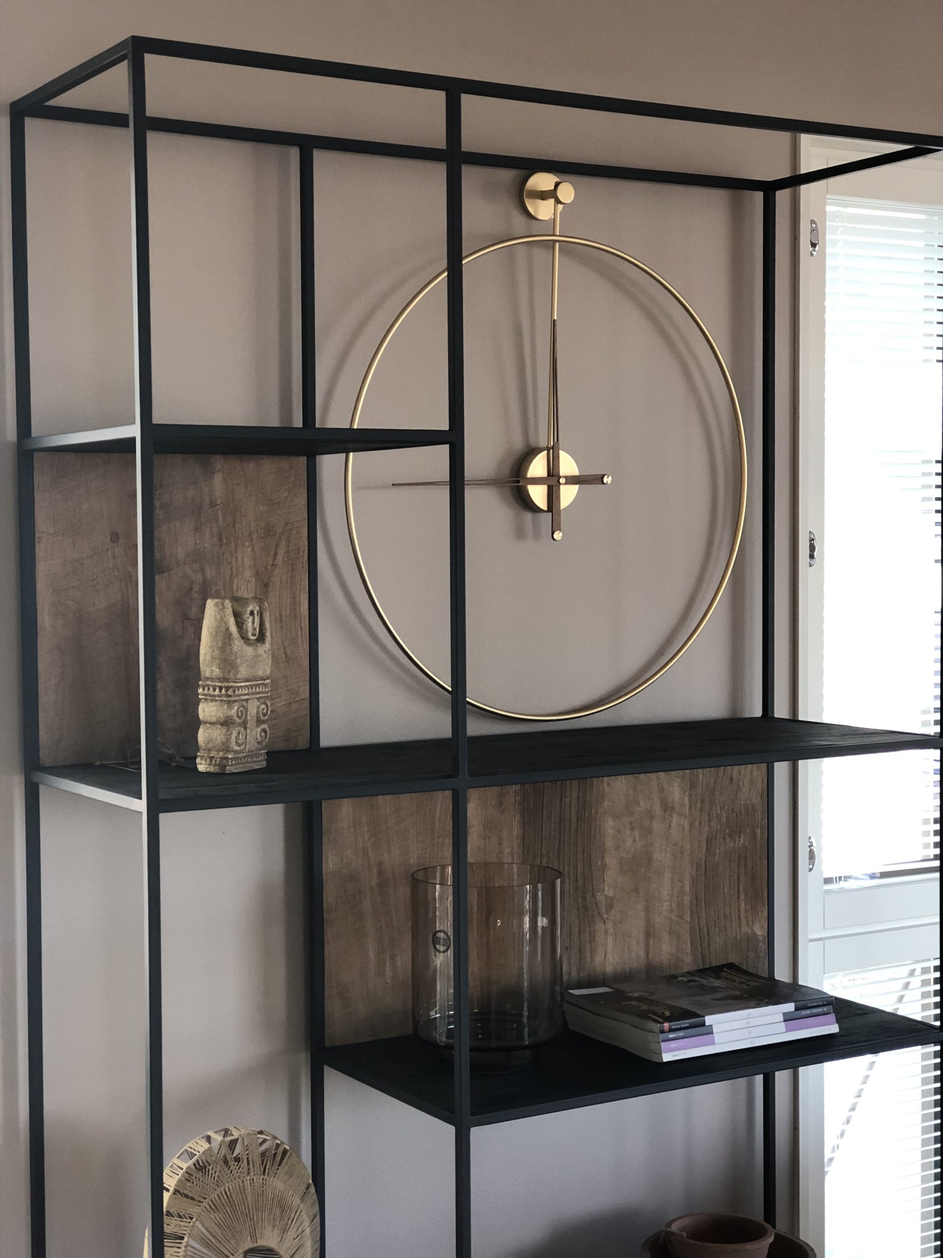 Sundial large iso seinäkello on saanut inspiraationsa aurinkokellon yksikertaisesta ideasta. Suuri 70cm halkaisijan kullanvärinen metallikierre ja linjakkaat puuviisarit yhdistyvät näyttäväksi seinäkelloksi, joka sekä näyttää ajan että koristaa seinän tyylillä. Ripustus seinälle heilurimaisesta pidikkeestä. Saatavilla myös pienempi koko.