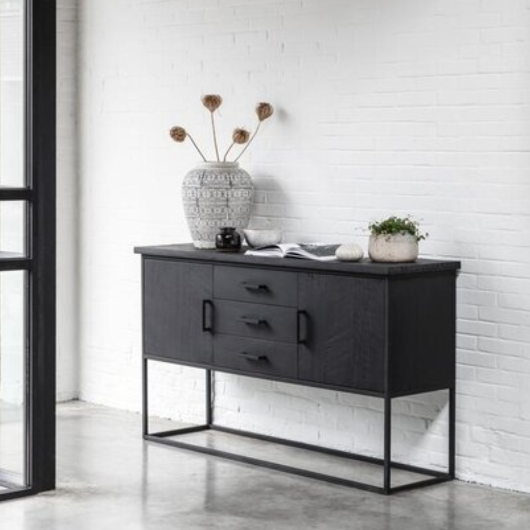 Jotain erilaista tyylillä. Upean näyttävä musta puinen senkki. Laadukas, niin katsetta kuin käyttöäkin kestävä senkki sopii niin astioiden kuin muunkin tavaran säilytykseen. Täydellinen kaappi, jos näyttävyyttä yhdellä huonekalulla. Sivuille aukeavat kaksi kaappia ja kolme laatikkoa. Korotetut jalat tuovat isoon kalusteeseen ilmavuutta.