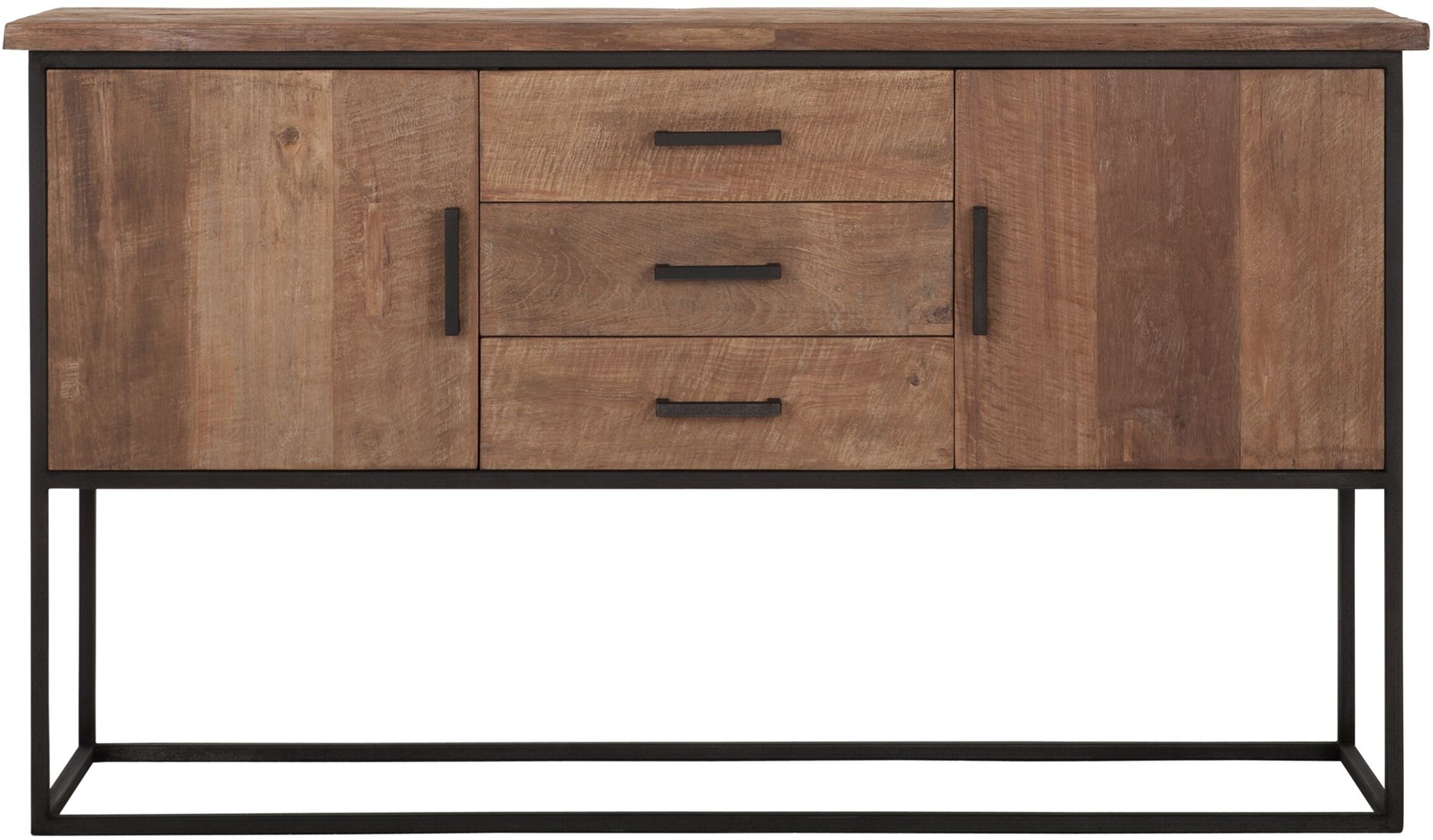 Tyylikäs puinen senkki mattamustalla metallirungolla. Rouhea, mutta taidokkaasti viimeistelty tiikkipinta tuo kotoisuutta ja lämpöä sisustukseen. Kaksi ovellista kaappia sekä kolme laatikkoa. Tukeva senkki seisoo jaloillaan, mikä tuo ilmavuutta isoon astiakaappiin. Monikäyttöinen, helppohoitoinen ja näyttävä tiikkipuinen senkki.