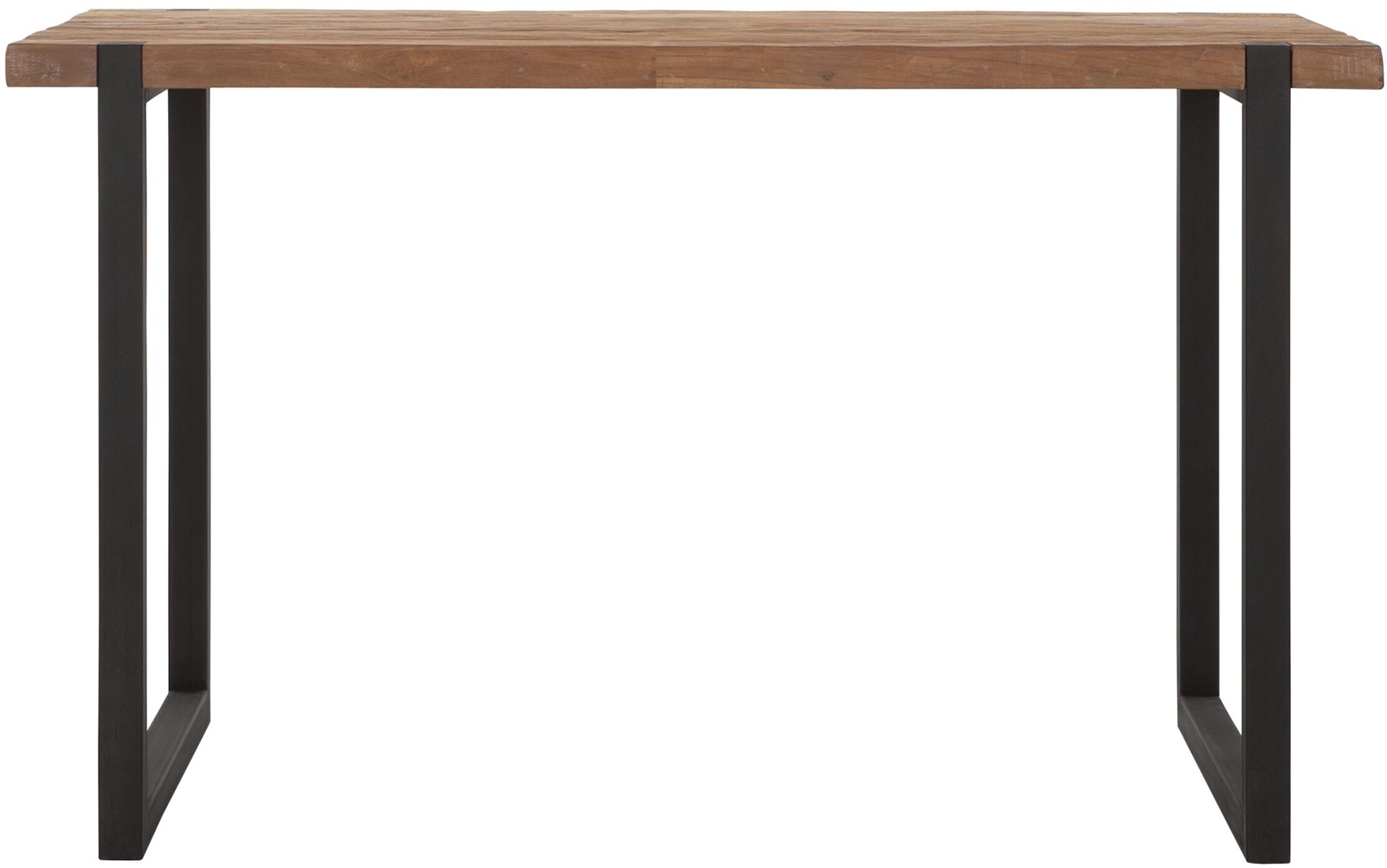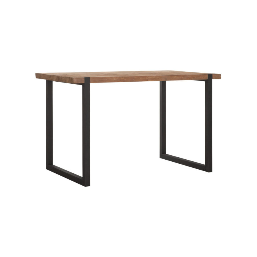 Tyylikäs puinen saarekepöytä nousee korkealle, ja istuimiksi käyvät saarekekorkeuteen tarkoitetut baarituolit. Saarekepöydällä tuot eloa keittiön tai ruokailutilan sisustukseen ja helpon istahduspaikan kotiin. Oletko ajatellut, että keittiön saareke voi olla myös irrallinen pöytä omana yksikkönään? Aika kiva idea, eikös! Timeless -sarjan muotoilu on jykevää. Tiikkipöydän päät on viimeistelty sahajäljellä, joka tuo extra rosoisuutta, mutta myö näyttävyyttä ja lämpöä tyyliin. Rouhean lankkupöydän viimeistelee rautajalka, joka nousee pöytälevyn alle korostamaan pöydän mallia.