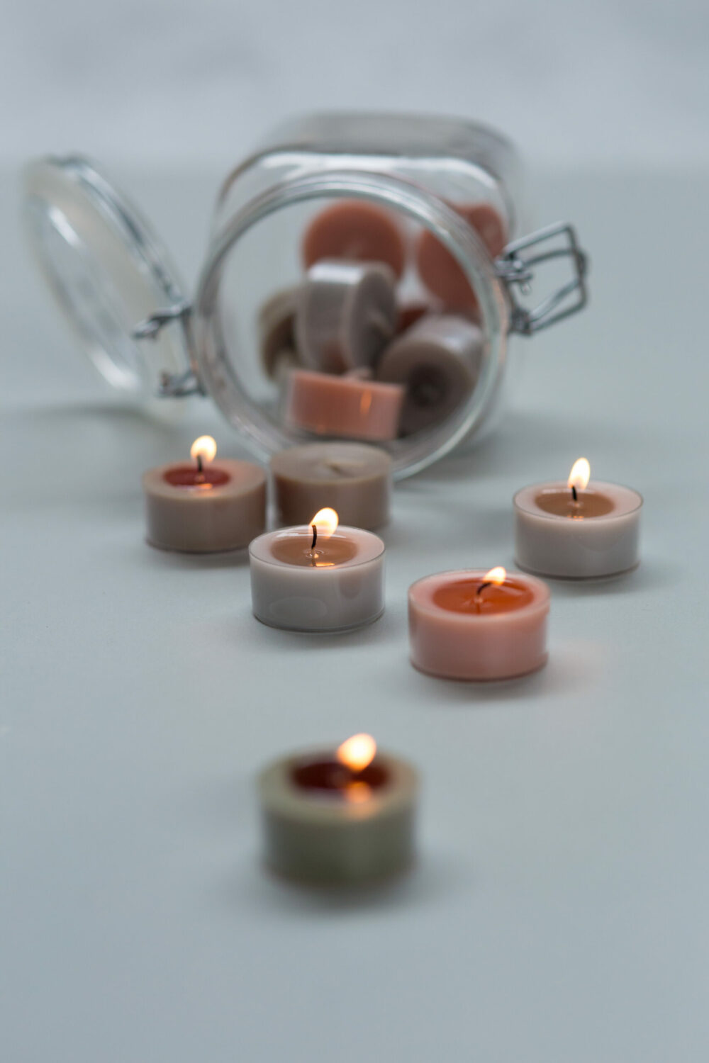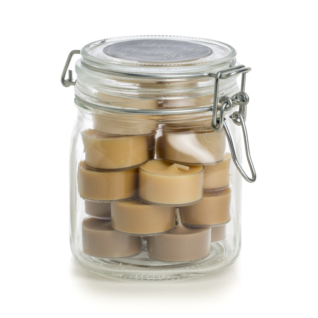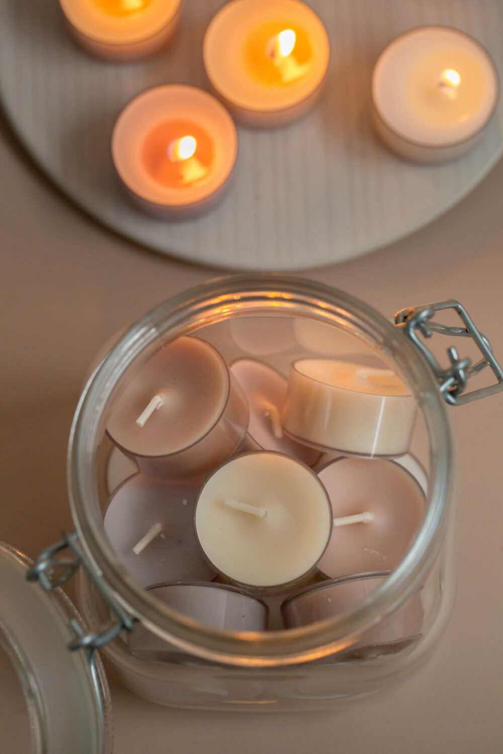 Tyylikäs lasipurkki, joka sisältää kauniita café latte -sävyisiä tuikkukynttilöitä. Täydellinen sisustuselementti, joka tuo lämpöä ja harmoniaa kotiin. Ihana lahjaidea tai käytännöllinen tuliainen. Tuoksuton.