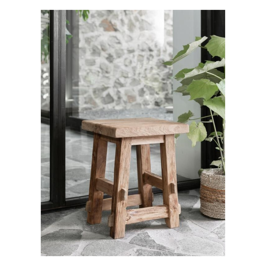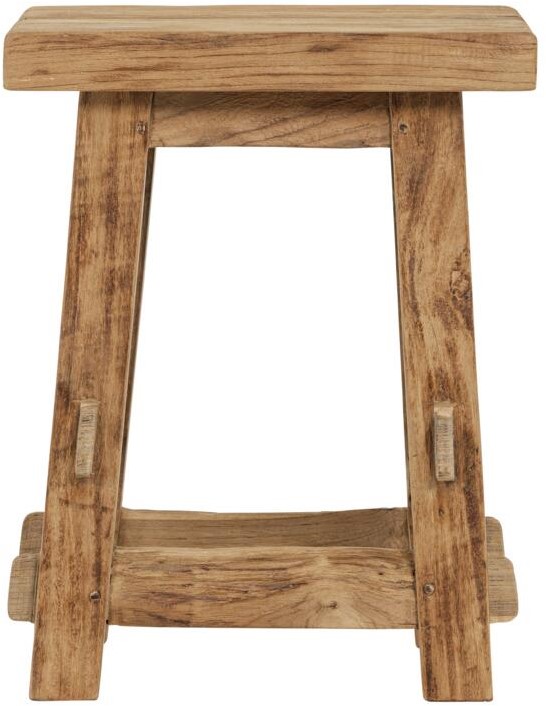 Kierrätystiikistä tehty rustiikki pieni puujakkara sopii sisustukseen moneen tilaan. Vankka puinen jakkara käy niin eteisen penkkinä kuin keittiössä tai yöpöytänä. Tiikki kestää myös kosteutta, joten se ei hätkähdä kylpyhuoneen olosuhteissakaan. Eteiseen istahduspaikaksi, olohuoneen penkiksi tai kukkatelineeksi, makuuhuoneeseen, kylpyhuoneen pyyhkeille. Monikäyttöinen kapea jakkara toimii tilassa kuin tilassa ja näyttää aina hyvältä.
